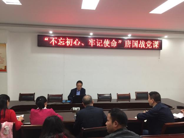 1015日下午,学院党委书记唐国战在323会议室以不忘初心、牢记使命,做新时代优秀共产党员为题讲授专题党课。学院各教研室主任、支部书记以及学生党员共同参加。