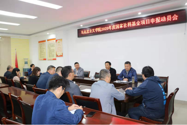 10月22日下午,金年会jinnianhuicom在社科楼323会议室召开2020年度国家社科基金项目申报动员大会。金年会jinnianhuicom院长杨云善、党委副书记徐永新、副院长黄世明、当代马克思主义研究所副所长门献敏及金年会官网教师共同参加了本次会议。会议由徐永新主持。