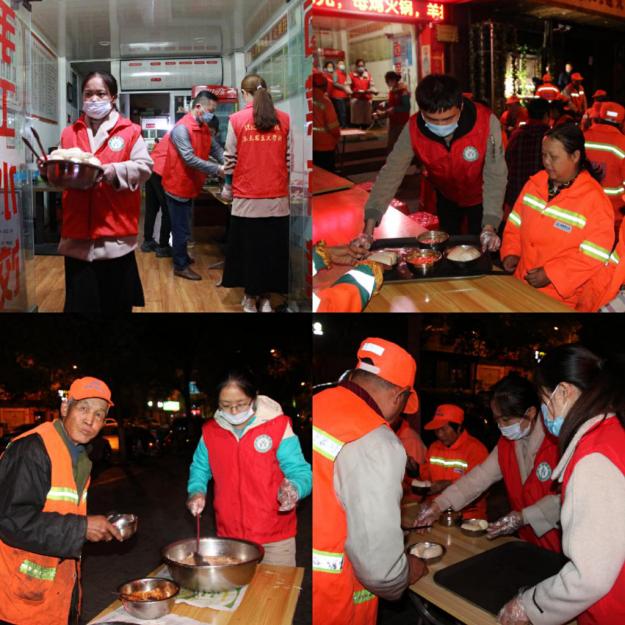 按照“不忘初心,牢记使命”主题教育精神要求,结合我支部的工作安排,本着大力弘扬“奉献、友爱、互助、进步”的志愿者服务精神,发挥党员同志的先锋模范作用,进一步密切党群关系,2019年10月31日金年会官网研究生党支部部分党员和入党积极分子组成志愿服务小队,来到信阳市申碑路浉河区“爱心粥屋”,为环卫工人备餐献爱心。
