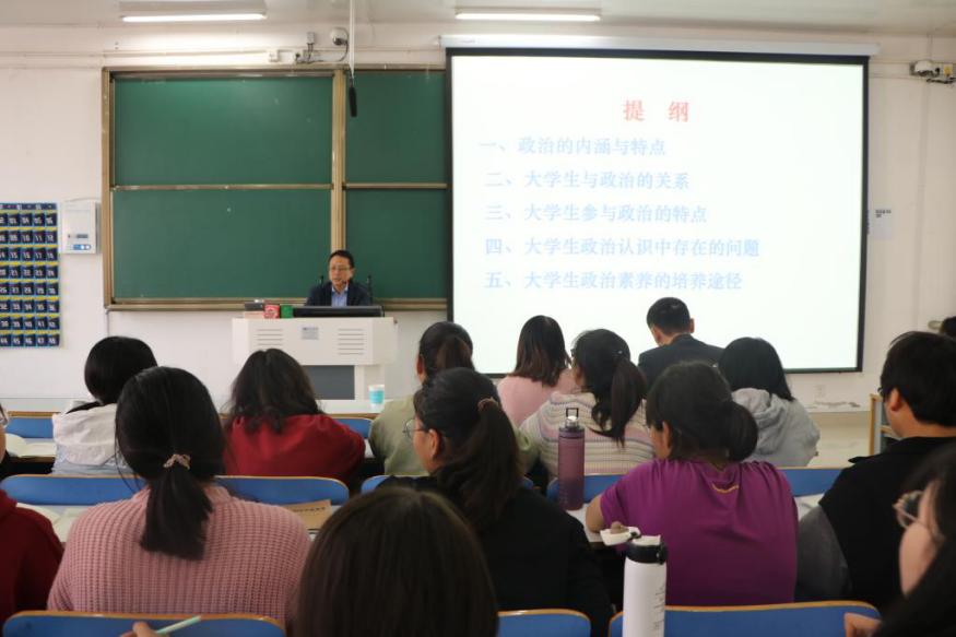 唐国战立足实际,详细阐述了政治的内涵与特点、大学生与政治的关系、大学生政治认识中存在的问题、大学生参与政治的特点以及大学生政治素养的培养途径五方面内容。他详细阐述政治的时代性、阶级性、权力性、层次性等方面特点,针对“没关系”、“没用处”、“没问题”、“有偏见”等问题进行剖析引导。他希望,共青团员应在日常学习生活中加强政治理论和时事政策的学习,培养坚定、敏锐、扎实的政治素质,为今后的成长成才打下良好基础。(金年会jinnianhuicom 赵婷婷/供稿 唐国战/审核)