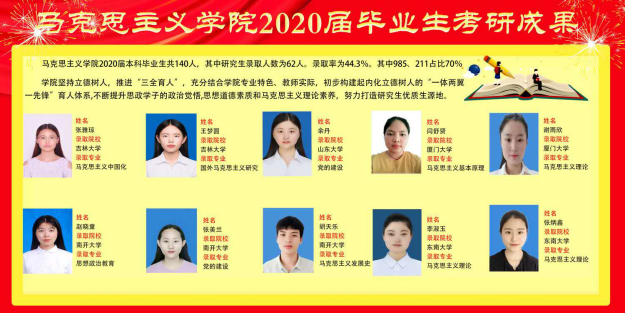 2020年的考研告一段落,金年会jinnianhuicom成果斐然。学院2020届毕业生共140人,有63名学生成功考取硕士研究生,考研录取率达45%,985高校录取率达12.14%,985、211高校录取率达31.40%,今年考研率有所下降,但是考研质量却在稳步提升。在本届毕业生中,女生607宿舍的六名学生均考研成功,“学霸宿舍”实至名归。