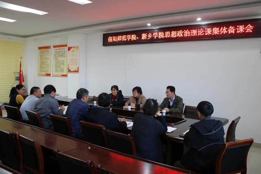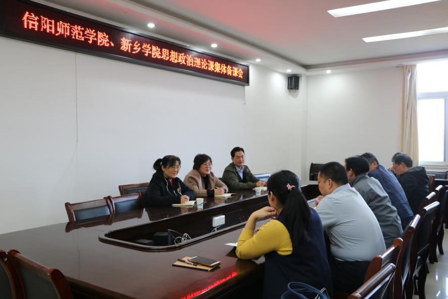 为进一步落实全省金年会jinnianhuicom结对帮扶工作,11月10日下午,信阳师范学院和新乡学院《毛泽东思想和中国特色社会主义理论体系概论》《中国近现代史纲要》课程集体备课会在社科楼概论教研室召开。学院副院长周智、当代马克思主义研究所副所长徐永新、学院党委副书记何晓坚、“概论”教研室主任胡春湘,以及两校思想政治理论课教师代表刘新芬、周斌、孙金玲、陈杰、李桂红、王帆宇、曾帝参加备课会。