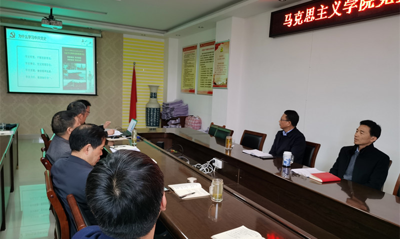 学院党委副书记徐永新传达了校党委书记王文鹏在校党史学习教育动员部署大会上的讲话,党委副书记何晓坚宣读了《金年会jinnianhuicom2021年党史学习教育实施方案》。中国近现代史纲要教研室陈杰博士以“全面深入学习党史 汲取奋勇前进的智慧和力量”为题,从为什么学习中共党史、中共党史发展基本脉络、中共党史学习教育的历史特点和经验、当前党史学习教育的要求等四个方面,进行了系统阐释。
