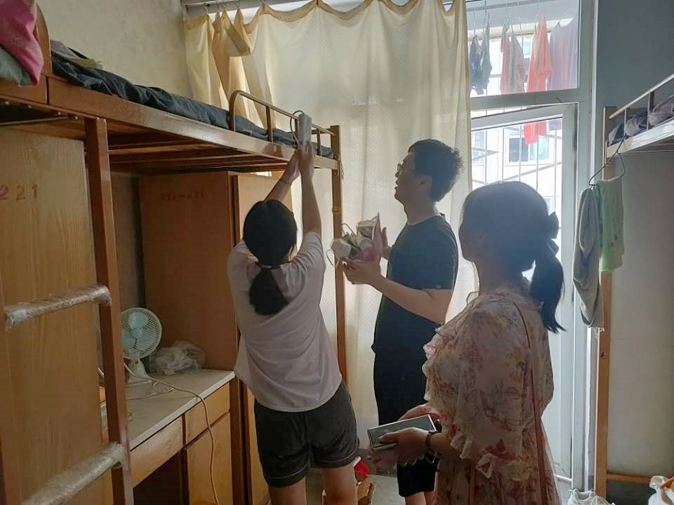 随后,唐国战、周智带领办公室工作人员对学院各办公室、教研室、资料室、会议室、教室等场所的水电设施、消防设备、空调使用等情况进行了全面细致的检查。针对检查中发现的问题,进行了认真登记归类。徐永新、何晓坚组织卢云晓、郑晨霞等研究生秘书和曹栋、陶青青等本科生辅导员逐一检查了学生宿舍,对存在的隐患进行了及时提醒和改正。各班主任还将《暑期安全学生承诺书》印发给每位学生,组织学生签署承诺书,并将《暑期安全家长告知书》发送到各班家长群,与家长一起共同构建安全保障网络。对个别家庭遇到突发事故的学生还及时采取了帮扶措施。