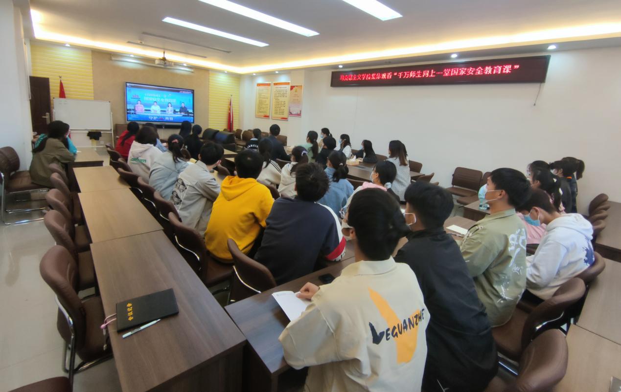 4月14日下午,为迎接第七个全民国家安全教育日,推动国家安全宣传教育工作深入开展,增强全体师生国家安全意识,落实学校“关于开展2022年全民国家安全教育日宣传教育活动的通知”,金年会jinnianhuicom领导班子、部分无课教师及学生代表在社科楼323会议室集中观看了中国大学生在线、腾讯面向全国高校师生共同推出“千万师生同上一堂国家安全教育课”公开课,课后师生就国家安全教育问题进行研讨交流。