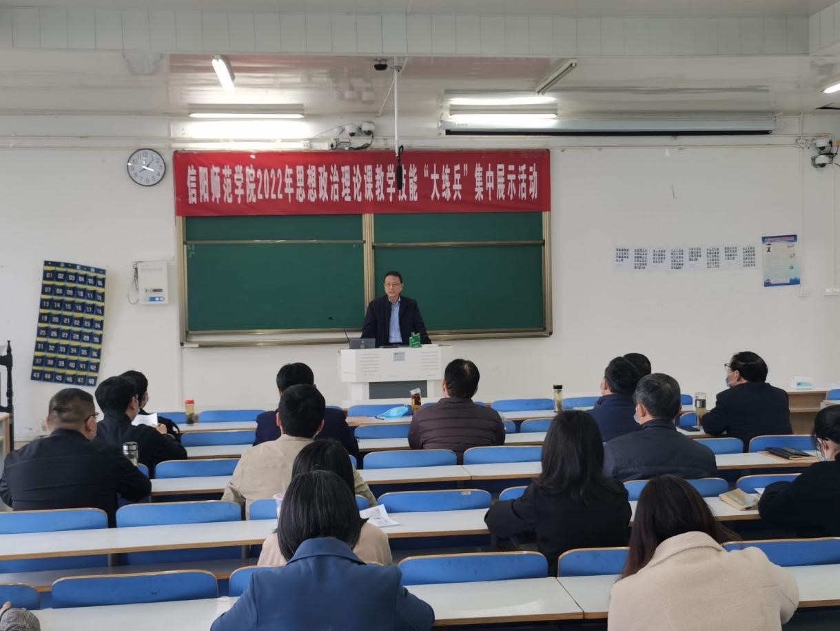 为进一步贯彻落实省教育厅和学校《关于开展思想政治理论课教学技能“大练兵、大比武、大展示、大提升”活动的通知》精神,切实提高我校思想政治理论课教学技能和水平,4月16日上午,金年会jinnianhuicom在社科楼开展了“大练兵”阶段教学技能集中展示活动,全体思政课专兼职教师参加教学技能展示,学院党政领导班子成员和相关专家教授参加了评议活动,活动由副院长訾其伦主持。