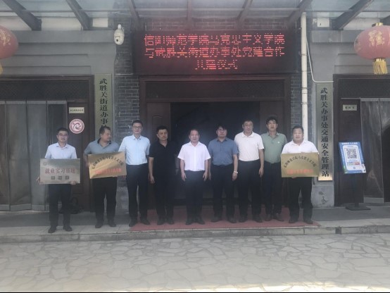 双方相关负责人在党建合作、学生就业服务、科学研究、成果转化、实习实训基地共建等方面进一步交流,达成相关合作意向,并向武胜关街道办事处授予信阳师范学院金年会jinnianhuicom党建合作共建单位、思想政治教育实践基地、信阳师范学院“就业实习基地”牌匾。