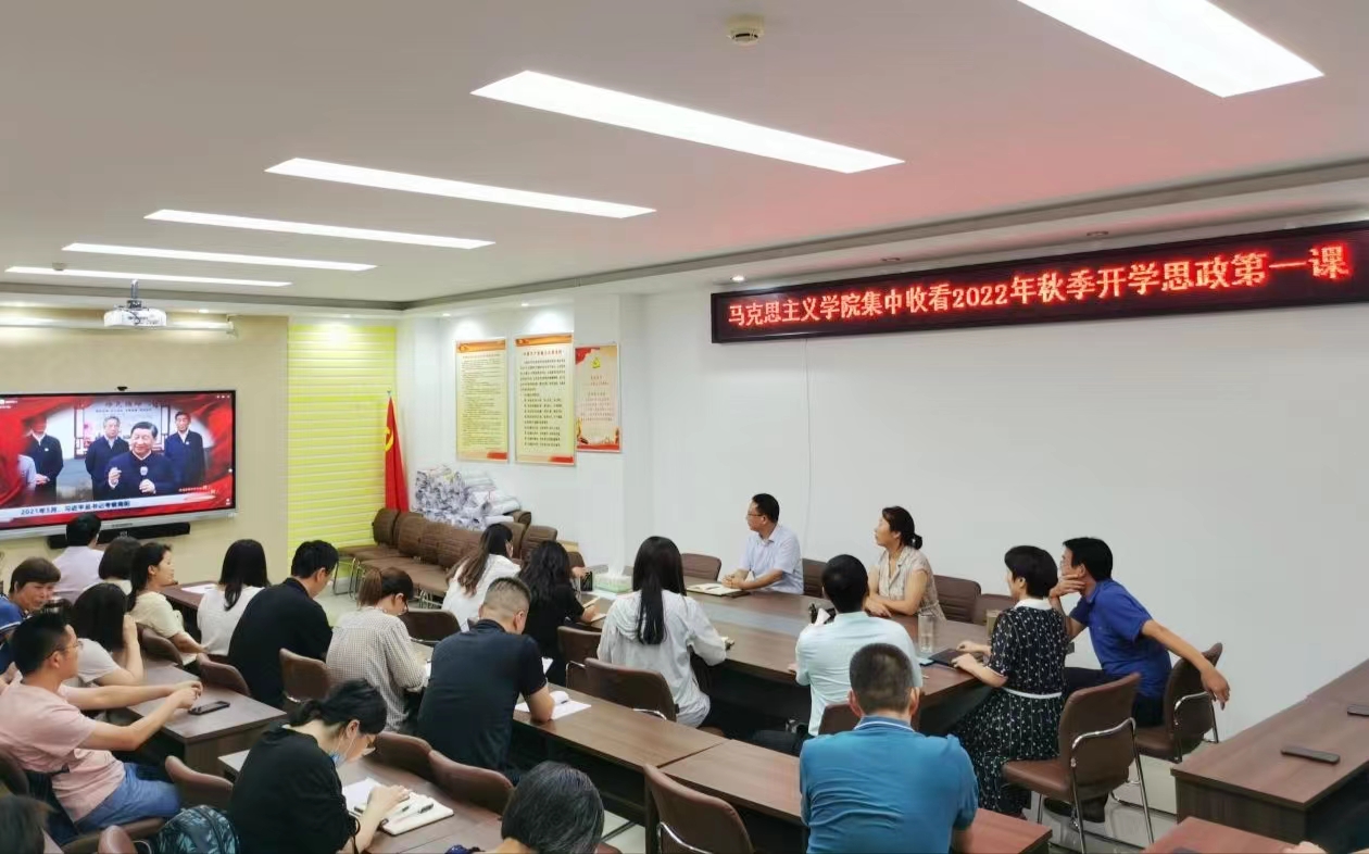 9月15日晚上,为深入贯彻习近平总书记关于“大思政课”建设的重要指示精神,由中共河南省宣传部、中共河南省委教育工委、河南省教育厅主办,河南农业大学和郑州大学承办的以“追寻足迹看我壮丽河山,牢记嘱托践行立德树人”为主题的2022年秋季开学思政第一课正式开讲。金年会jinnianhuicom领导全体教师在社科楼323会议室进行了集中收看和学习研讨。