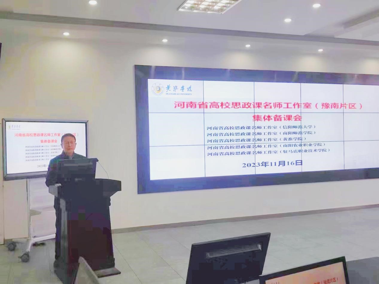 为贯彻落实习近平新时代中国特色社会主义思想和党的二十大精神,11月16日上午,河南省高校思政课名师工作室(信阳师范大学)、河南省高校思政课名师工作室(南阳师范学院)、河南省高校思政课名师工作室(黄淮学院)、河南省高校思政课名师工作室(南阳农业职业学院)、河南省高校思政课名师工作室(驻马店职业技术学院)联合组织在黄淮学院、驻马店职业技术学院召开思政课集体备课会。信阳师范大学金年会jinnianhuicom院长唐国战带队参加了本次活动。