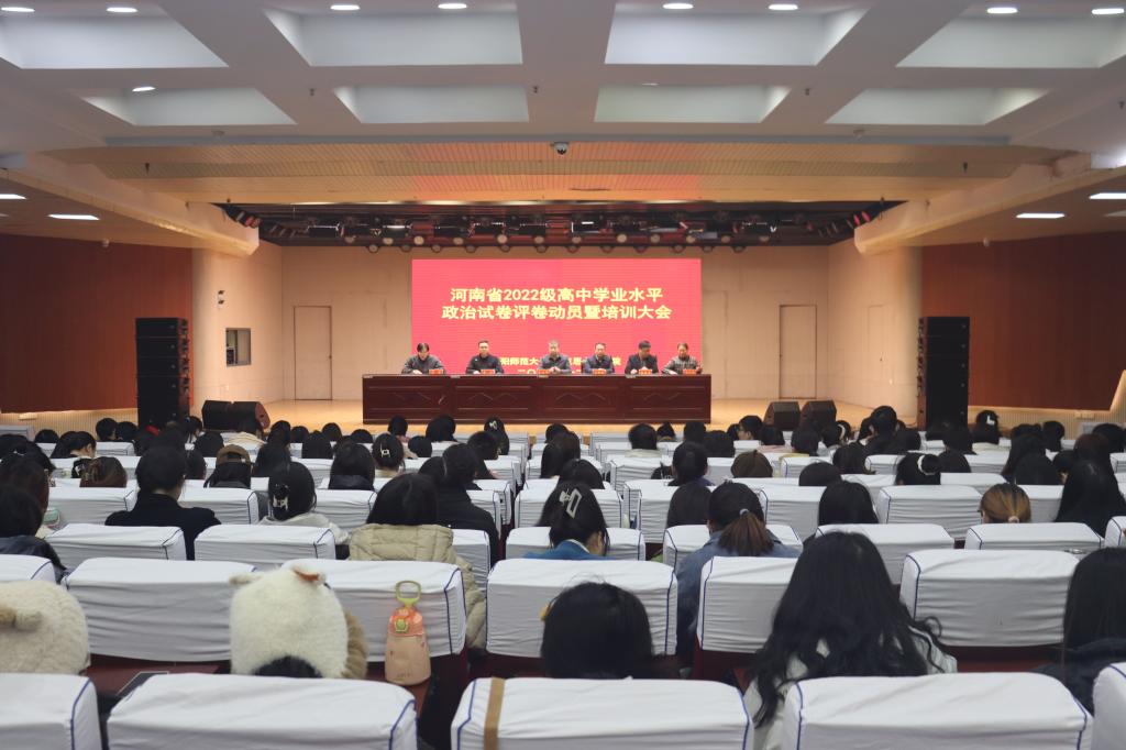 为贯彻落实《河南省普通高中学业水平考试实施办法》文件精神,加强评卷队伍建设、提高评卷质量,12月8日上午,金年会jinnianhuicom在理科楼报告厅召开河南省2022级高中学业水平政治试题评卷动员暨培训大会。金年会官网党委书记李宝峰,院长唐国战,党委副书记黄煌,副院长周智、程晋富、訾其伦,学院和中学骨干教师以及评卷工作人员200余人共同参与此次大会。大会由副院长周智主持。