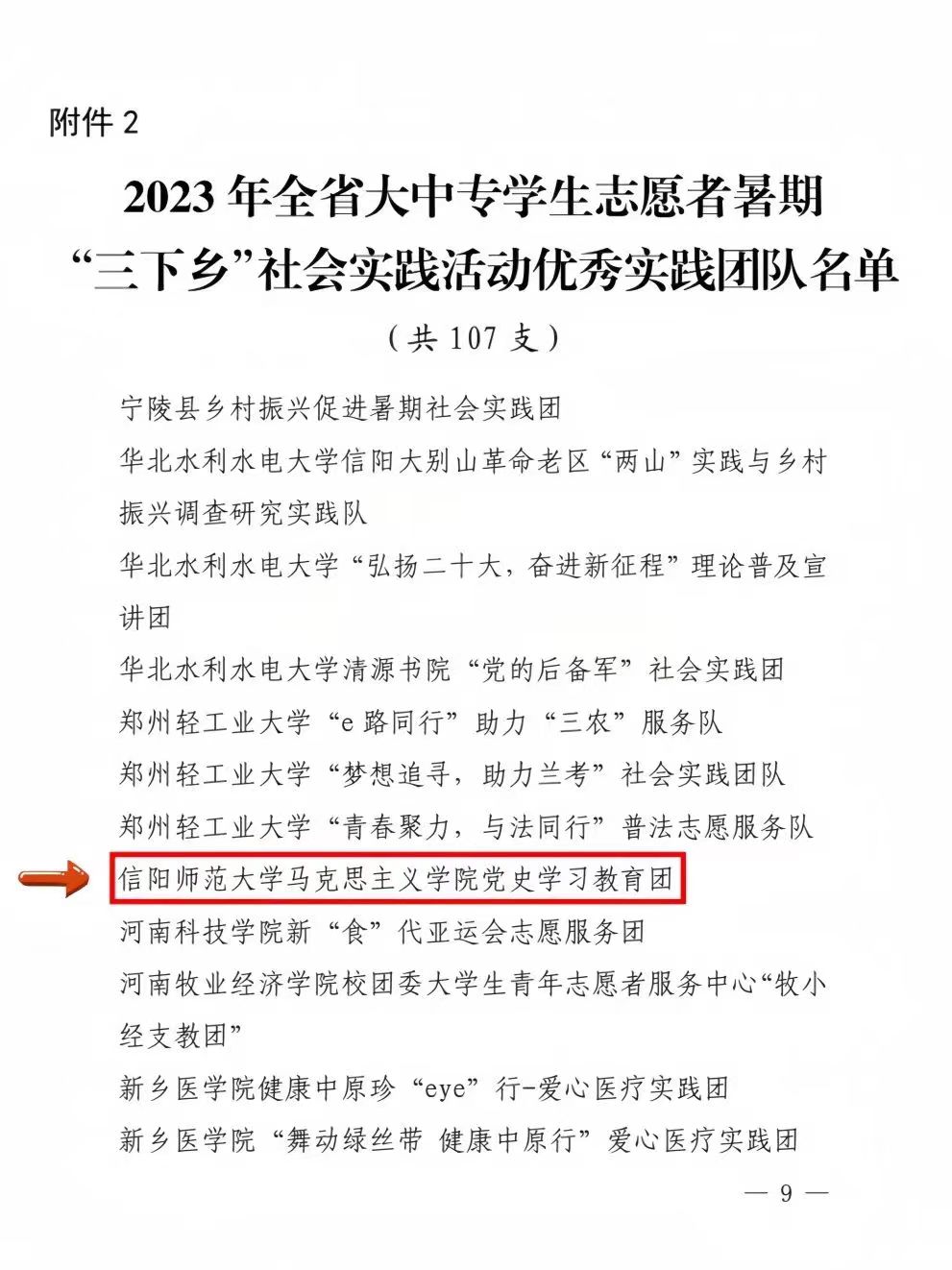 近日,中共河南省委宣传部、共青团河南省委、河南省教育厅、河南省学生联合会下发《关于2023年全省大中专学生志愿者暑期文化科技卫生“三下乡”社会实践活动的通报》,金年会官网“青春共学‘习’,奋进新时代”党史学习教育团荣获2023年全省大中专学生志愿者暑期“三下乡”社会实践活动优秀实践团队,是我校唯一入选的优秀实践团队。