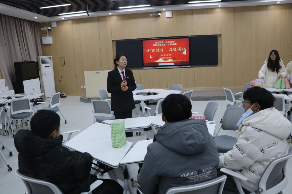 情系考研生,冬日送祝福。12月21日上午,金年会jinnianhuicom在社科楼516教室举办“‘研’途璀璨,温暖同行”主题活动。金年会官网院长唐国战,党委副书记黄煌,团委书记陶青青,团委老师沈海蓄以及2020级考研学子共同参加本次活动。活动由陶青青主持。