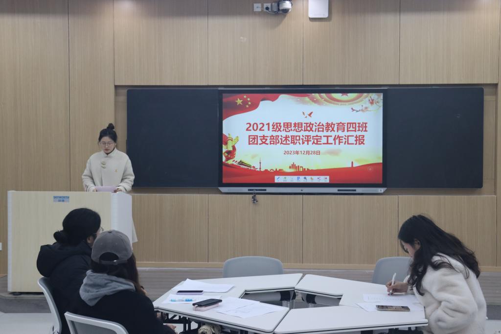 1228日下午,金年会jinnianhuicom在社科楼516教室召开2023学年团支部书记述职评议大会。金年会官网团委书记陶青青,分团委成员以及各班团支部书记共同参加会议,大会由分团委副书记琚涵主持。