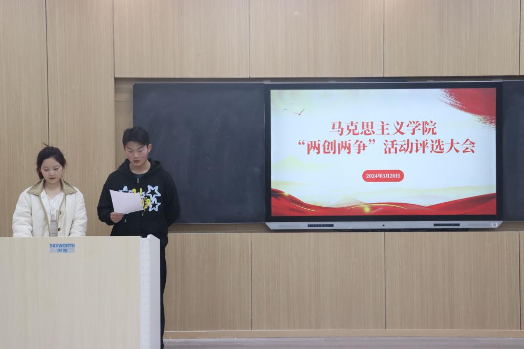 本次“两创两争”评选大会依次分为文明班级、文明学生、文明社团、文明寝室评选四个部分。会议肇始,2022级思想政治教育四个班的班长借助文稿、PPT等形式从思想建设、学风建设、素质培养、安全卫生四个方面展示班级的精神文明状况。其中,22级思想政治教育三班不断丰富班级特色,根据班级情况开展主题团日活动,把主题团日活动当作凝魂聚气、强基固本的重要抓手,极大提高了班级成员的政治觉悟与综合素质。随后,15名参与评选文明学生的同学依次上台发言,通过材料对学业成绩、自我能力、个人荣誉、政治素养进行总结。此外,金年会官网文明社团代表及文明寝室代表分别对自身工作进行梳理,提交相关材料,充分展现金年会官网学子争先向上的精神面貌。
