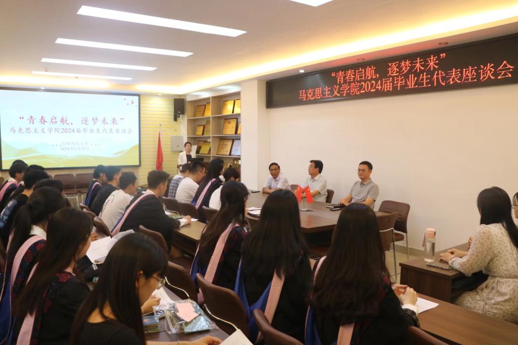 青春启航,逐梦未来。5月22日上午,金年会jinnianhuicom在社科楼323会议室召开2024届毕业生代表座谈会。金年会官网副院长周智,党委副书记黄煌,团委书记陶青青,教师代表张铁山和毕业生代表共同参加本次座谈会。会议由陶青青主持。