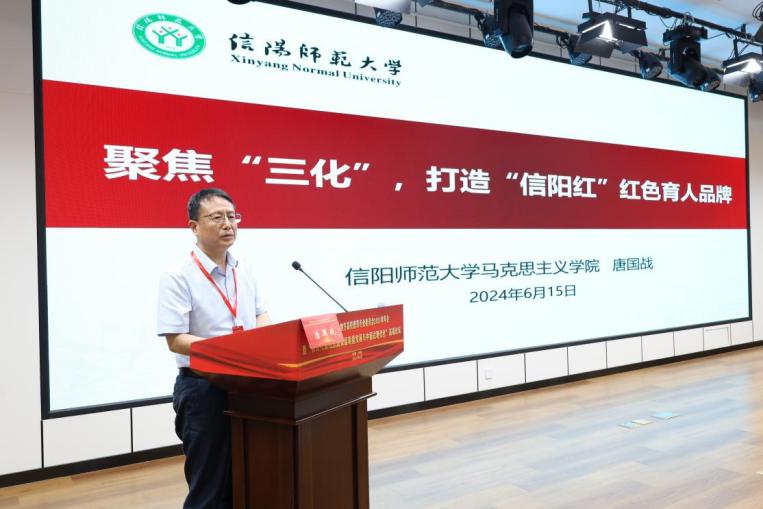 在专家报告中,院长唐国战以《聚焦“三化”,打造“信阳红”红色育人品牌》为题做了专题发言。唐国战提到大别山区军民创造了“28年红旗不倒”的革命奇迹,铸就了“坚守信念、胸怀全局、团结一心、勇当前锋”的大别山精神,形成了具有独特区域教育特质的“信阳红”精神标识。近年来,信阳师范大学金年会jinnianhuicom扎根大别山革命老区,深入挖掘大别山红色资源,汇聚提炼丰富育人元素,将信阳“红”的属性融入思政课程、课程思政、大中小学思政课一体化建设等诸多方面,构建红色育人体系,打造红色育人高地,培育红色时代新人,取得了显著成效。