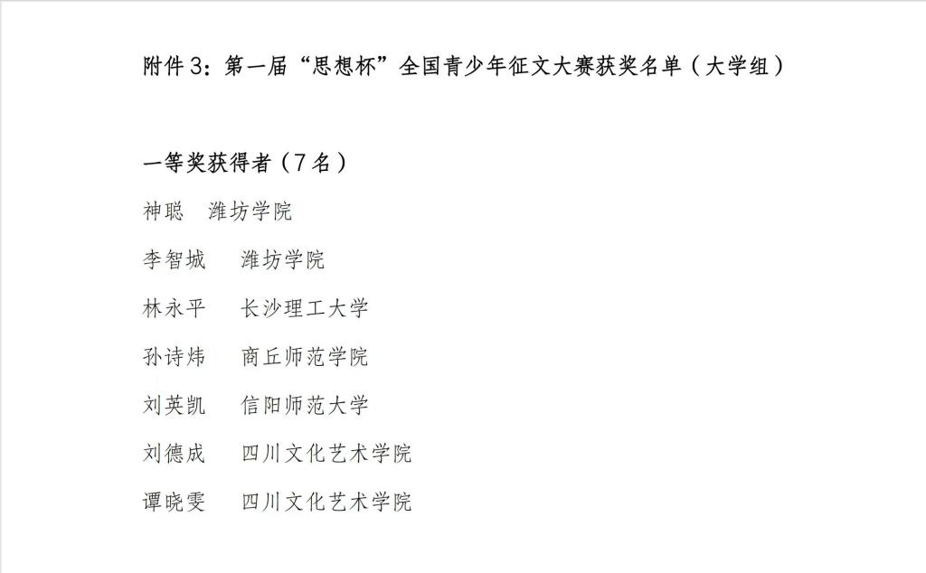 据了解,第一届“思想杯”全国青少年征文大赛由河南省青少年作家协会发起,旨在挖掘和传承中华优秀传统文化,培养青少年的历史文化素养和文学创作能力,同时为优秀文学人才培养和选拔搭建平台。大赛共收到参赛作品 2180 篇,评选出 1411 篇优秀作品,并决出了各奖项归属。(金年会jinnianhuicom 贾傲雪 薛蒙蒙/供稿 王超 陶青青/审核)