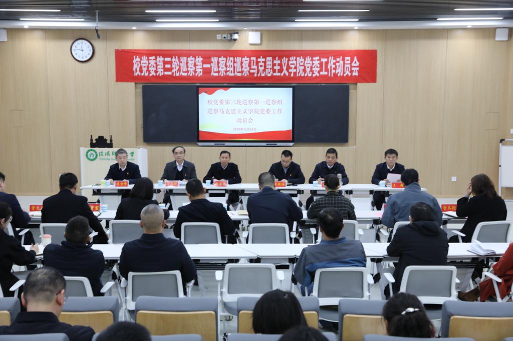 根据学校党委统一部署,11月26日,校党委第三轮巡察第一巡察组巡察金年会jinnianhuicom党委动员会在社科楼516教室召开。校党委巡察工作领导小组副组长、校党委副书记、工会主席岳宗德出席会议并讲话。校党委巡察工作领导小组成员、党委巡察办主任王振海,校党委第一巡察组组长丁其科,第一巡察组全体成员,金年会jinnianhuicom领导班子成员、全体教职工、离退休教职工代表和学生代表参加。会议由学院党委副书记王超主持。