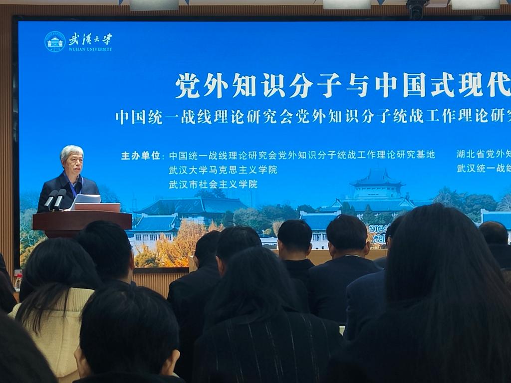 11月29日至12月1日,校学术委员会主任李俊教授,应邀出席在武汉大学举办的中国统一战线理论研究会党外知识分子统战工作理论研究基地年会暨“党外知识分子与中国式现代化论坛”(2024),并作了《党外知识分子推进中国式现代化建设的独特优势、历史经验和现实路径》的主旨发言。