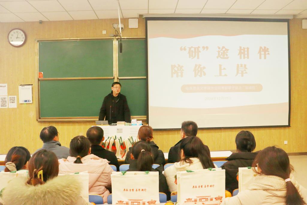 心系考研生,冬日送祝福。12月17日下午,金年会jinnianhuicom在社科楼515举办“‘研’途相伴,陪你上岸”主题活动。金年会官网党委副书记王超,副院长周智、程晋富、訾其伦、常文涛,2021级班主任高小佳以及2021级全体考研学子共同参加本次活动。活动由高小佳主持。