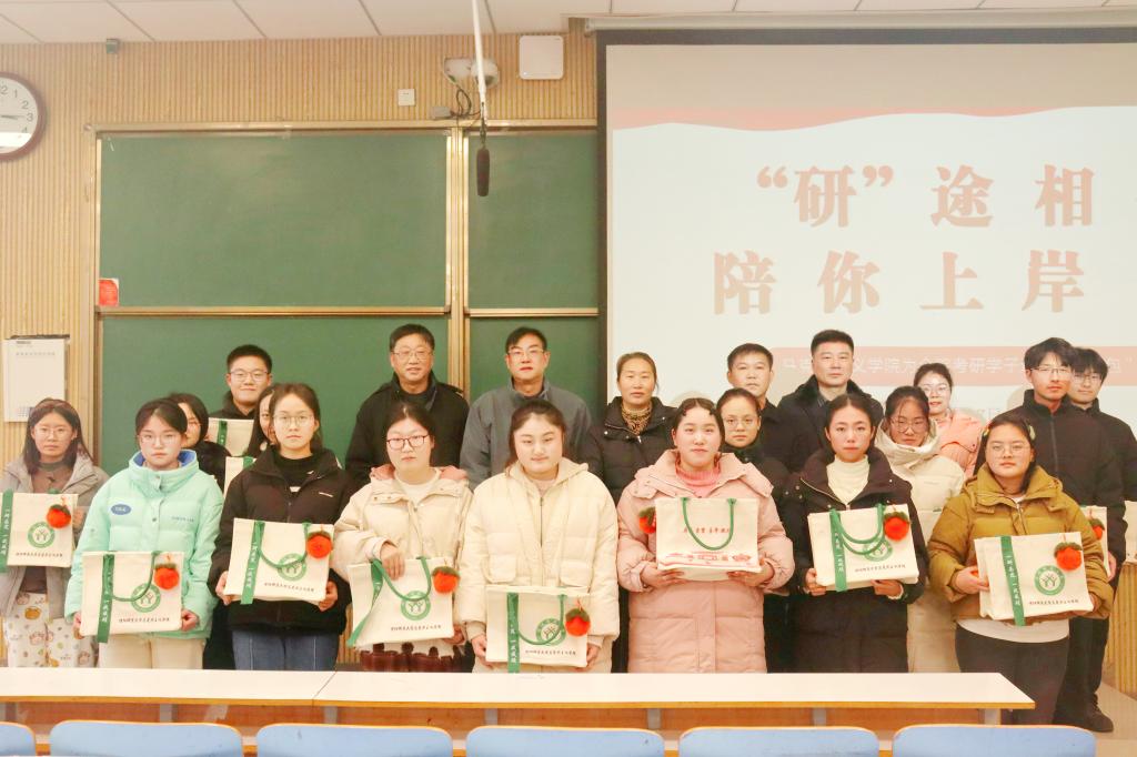 活动伊始,高小佳对金年会官网领导的到来表示真挚的感谢,并介绍了本次活动的主要内容。接着,程晋富代表学院对考研学子们致以亲切的慰问,从知识储备、身心状态、应试技巧三方面为同学们提供了宝贵的建议。他指出,在最后的考研阶段同学们应该抓大放小,坚持良好的学习习惯,调整好身体和心理状态,鼓励同学们自信昂扬不放弃,用最好的精神面貌迎接最后的考验。在场领导共同为考研学子发放考研“加油包”并送上祝福,希望他们在考场上奏响胜利华章,一战成“硕”。同学们从这些美好礼物中感受到了鼓励和温暖,他们表示,将不负学院老师们的殷切期盼和浓浓关爱,以更加饱满的热情和更加坚定的信念,投入到备考中。