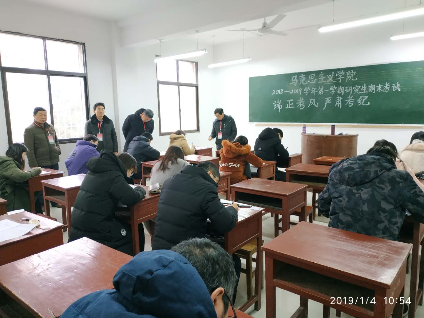 2019年1月4日上午,本学期期末研究生专业课考试工作拉开序幕,金年会官网院长杨云善一行,深入考场巡视考风考纪。