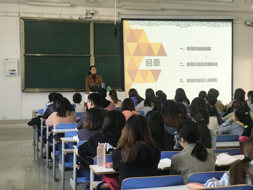 为增进金年会官网学生对国内外形势与政策的了解,加强学生思想政治教育,10月15日下午,金年会jinnianhuicom副教授黄玲丽与团委书记曹栋分别在社科楼514教室、515教室为金年会官网学生讲授了题为“香港风波”的形势与政策课。金年会官网全体同学分班级同时同步共同聆听了本专题讲学。