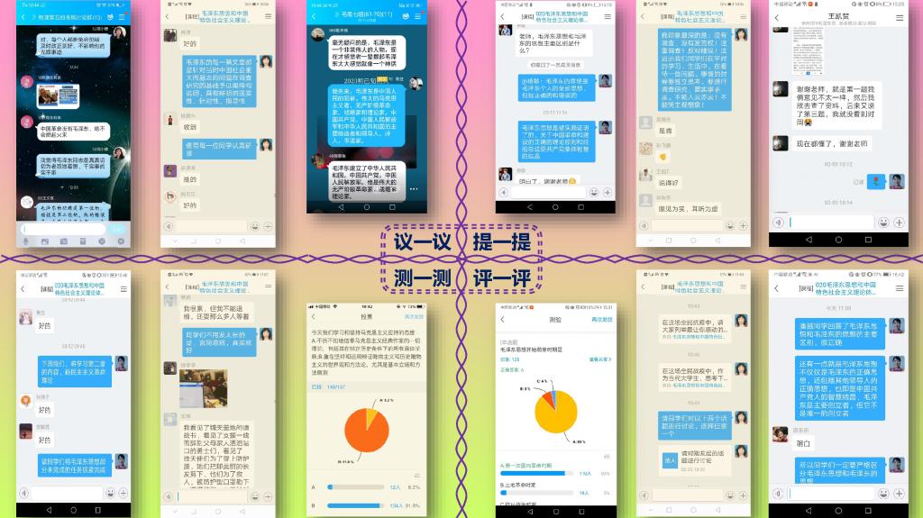 延期开学期间如何开展线上教学,不仅仅是应对疫情防控的需要,更应该视为推动教师教学理念、教学方式转变,学生学习观念转变的全面动员和全新起航。此次线上教学,“概论”课教研室启动了“学生自学+预习引导+在线互动+线下交流”的混合教学模式,采用“议一议”“提一提”“测一测”“评一评”等多环互动的方式,增强了“概论”课程教学的吸引力和互动性,保证了“概论”课“云端课堂”关键环节的顺畅性。