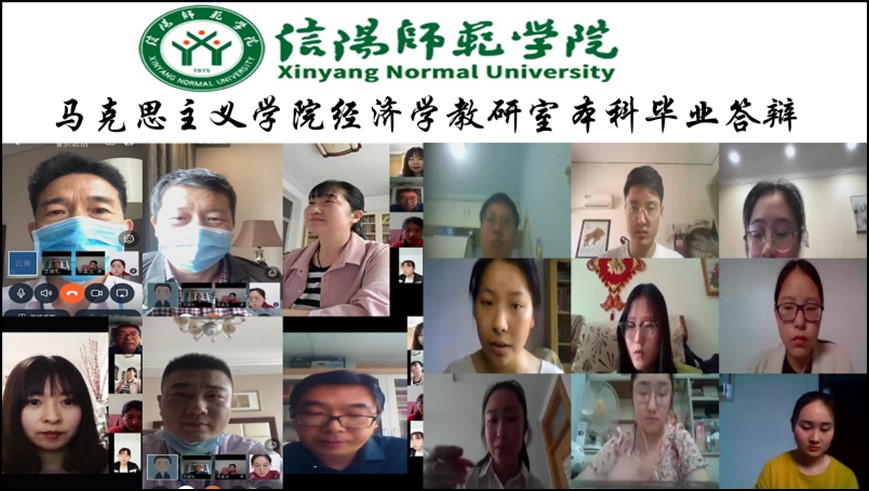 5月14日下午15:00,金年会官网经济学教研室通过钉钉视频会议平台,认真开展了2020届思想政治教育专业本科毕业答辩工作,杨云善、徐永新、丁静、殷凯、常文涛、王建礼等6位老师,以及史弘扬、李晨豪、葛格、张梦鸽、闫舒贤、李媛、李盛莉、胡梦雨、陈欢、闫丽、张炳鑫、陈希希、徐秋利、吕金洋、张雅欣、陈娇娇、余欢欢、韩宇飞、孙竹青等20名同学参加了答辩,会议由殷凯主持。
