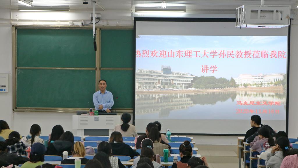 11月16日上午,应金年会jinnianhuicom和当代马克思主义研究所邀请,山东理工大学教授、博士生导师孙民在社科楼514教室作了题为“重思马克思的共产主义思想及其当代意义”的学术报告。信阳师范学院当代马克思主义研究所副所长徐永新以及百余名师生共同聆听了此次报告。报告由徐永新主持。