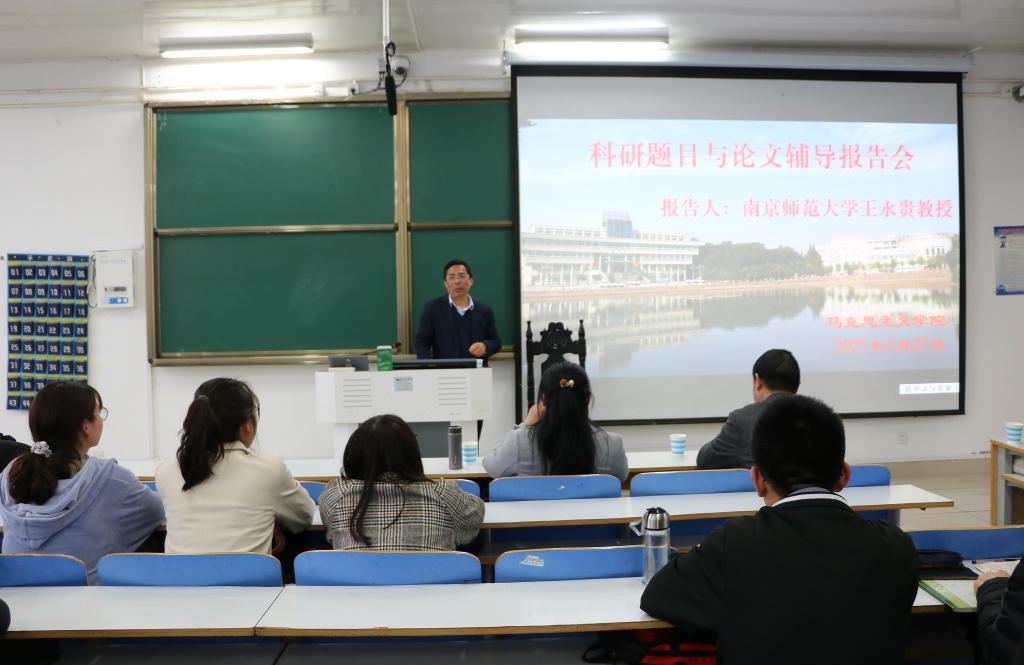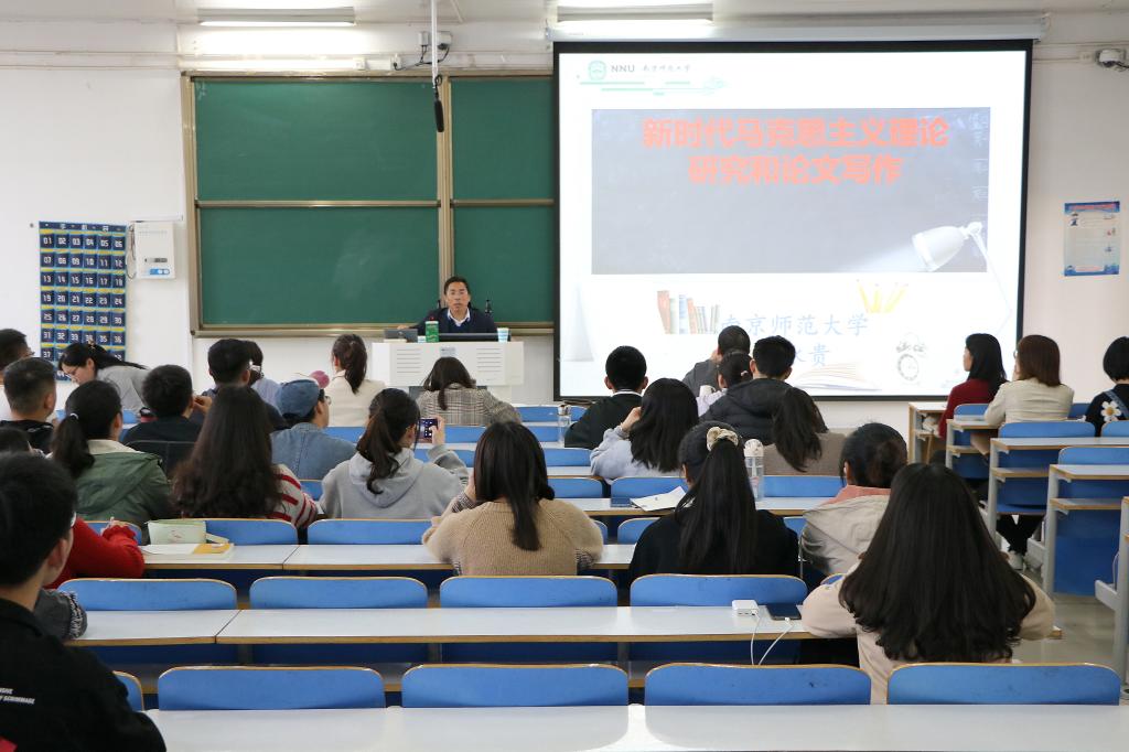 3月27日下午,应金年会jinnianhuicom、当代马克思主义研究所邀请,南京师范大学教授王永贵在社科楼514教室作了题为“新时代马克思主义理论研究和论文写作”的学术报告。当代马克思主义研究所副所长门献敏及百余名学生共同聆听此次报告。报告由门献敏主持。