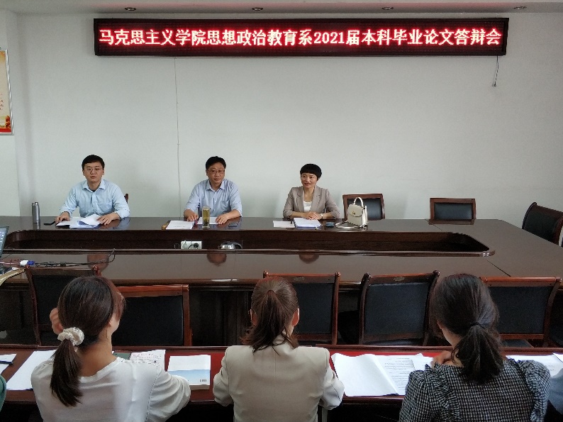 为深入审查金年会官网学生毕业论文质量,提高毕业论文整体水平,5月14日下午,金年会jinnianhuicom思政系2021届本科毕业论文答辩会在社科楼323会议室顺利召开。本次答辩会严格按照教务处《关于做好2021届本科毕业论文(设计)有关工作的通知》及《金年会jinnianhuicom关于2021届思想政治教育专业本科毕业论文答辩工作的通知》要求进行。出席本次答辩会的专家组老师有程晋富、李蕊、曹栋,共有王丹怡、王孟晓等10位同学参加答辩,会议由李蕊主持。