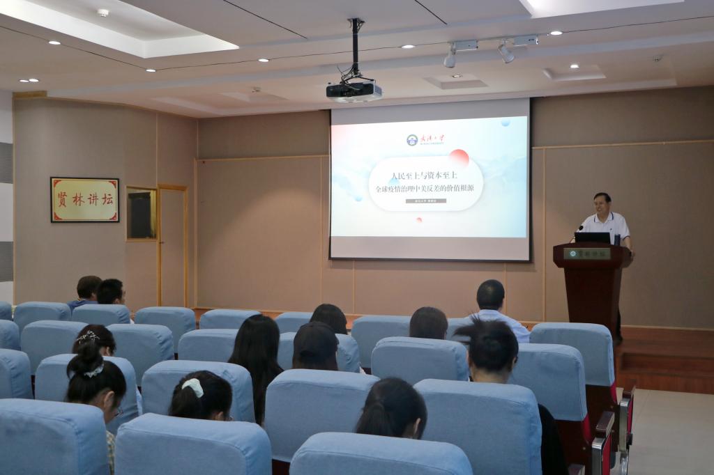6月11日下午,应金年会jinnianhuicom和当代马克思主义研究所邀请,武汉大学骆郁廷教授在贤林讲坛作了题为“人民至上与资本至上:全球疫情治理中美反差的价值根源”的学术报告。当代马克思主义研究所副所长门献敏及学院百余名师生共同聆听此次报告。报告由门献敏主持。