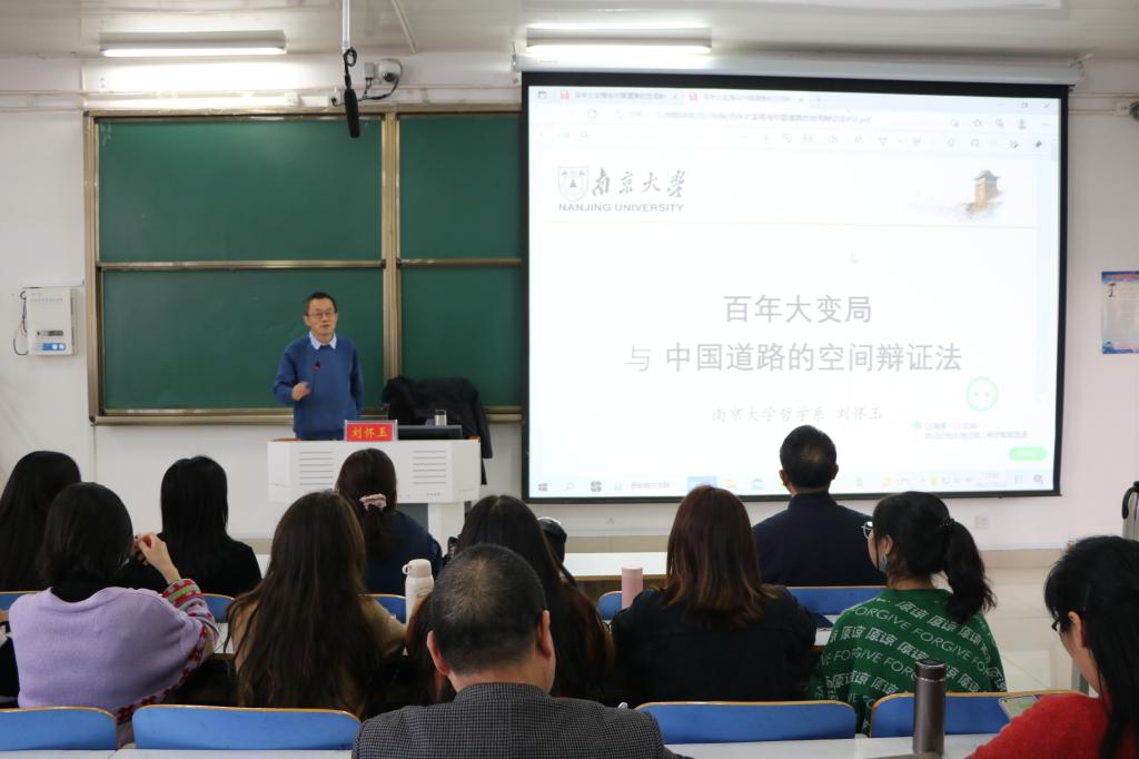10月22日下午,应金年会jinnianhuicom和当代马克思主义研究所邀请,南京大学刘怀玉教授在社科楼514教室作了题为“百年大变局与中国道路的空间辩证法”的学术报告。金年会jinnianhuicom院长唐国战及学院二百余名师生共同聆听此次报告会。报告由唐国战主持。