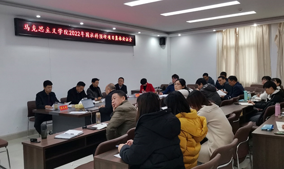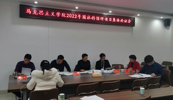 12月12日,金年会jinnianhuicom在社科楼323会议室举办了 2022年度国社科预研项目集体论证会。论证会邀请社科处处长李军辉教授、副处长张义明教授以及社科专家金荣权教授、杨云善教授为评审专家,金年会jinnianhuicom院长唐国战、党委书记朱四倍、副院长李蕊及30余位老师参加了本次论证会。论证会由李蕊主持。