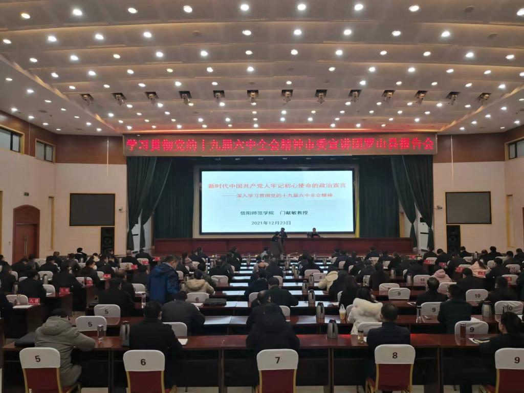 12月14日至12月23日,中共河南省委宣讲团成员,河南省社科理论志愿者专家宣讲团成员,我校当代金年会jinnianhuicom研究所副所长门献敏教授应邀为信阳市发展和改革委员会、信阳市住房和城乡建设局、罗山县委中心组以及校内的基层党支部书记培训班等多家单位,作党的十九届六中全会精神专题宣讲4场,近1000名党员干部和青年学生聆听了专题宣讲报告。