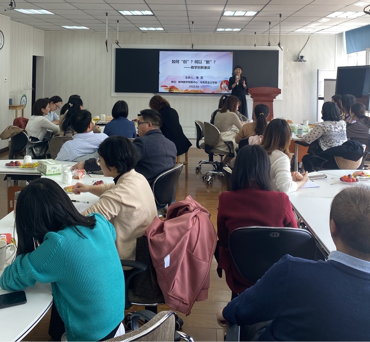 3月11日,金年会官网副院长李蕊教授应教师教学发展中心邀请,在教7楼501教室作 “如何 ‘创’? 何以 ‘新’ ? ——教学创新漫谈”专题讲座,金年会官网近20名青年教师和其他学院10多位教师参加了本次活动。