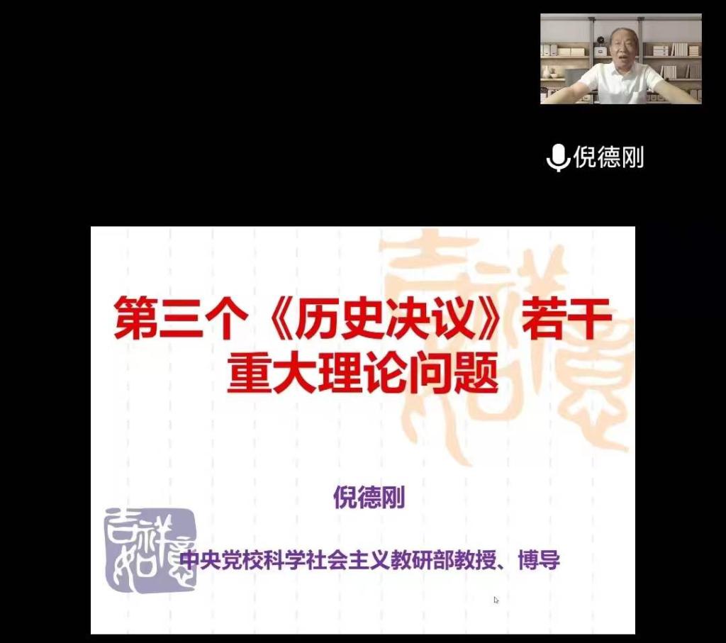 5月31日,应金年会jinnianhuicom邀请,中共中央党校(国家行政学院)倪德刚教授在腾讯会议网络平台为我校师生作了题为“第三个《历史决议》若干重大理论问题”的专题讲座。信阳师范学院校长李俊教授亲临讲座现场,金年会jinnianhuicom全体教师、研究生及部分本科生以集中或线上分散形式聆听了此次讲座。讲座由金年会jinnianhuicom院长唐国战教授主持。