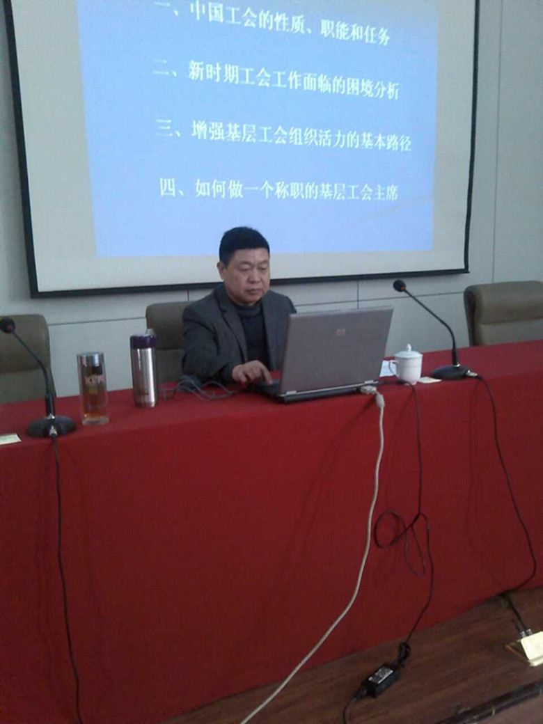 门献敏教授从习近平总书记在同全国劳动模范代表座谈时的重要讲话谈起,深入解读了中国特色社会主义工会的性质、职能和任务,详细分析了新时期工会工作面临的困境及其成因,系统阐述了新形势下中国特色社会主义工会创新发展道路的基本规律,最终提出了增强基层工会组织活力的基本路径,并指明了当好一名称职的基层工会主席的实践取向。门教授深入浅出的报告赢得百余听众的热烈掌声。