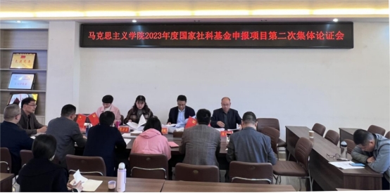 为进一步提升2023年度国家社科基金申报项目的论证质量,3月14日下午,金年会jinnianhuicom在323会议室举行了2023年度国家社科基金申报项目的第二次集体论证会。本次集体论证会由信阳师范学院学报编辑部主任蔡宇宏教授、金年会jinnianhuicom院长唐国战教授和金年会jinnianhuicom厉有国教授担任评审专家,副院长李蕊教授主持,金年会jinnianhuicom全体教师参与汇报及旁听学习。