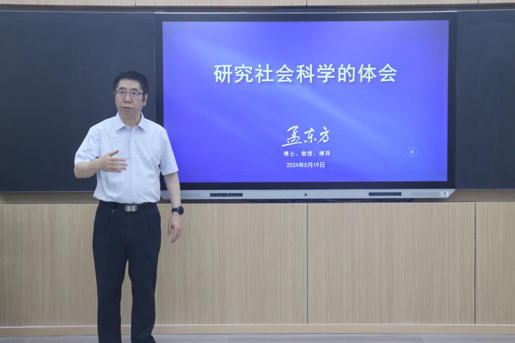 5月19日上午,应金年会jinnianhuicom和当代马克思主义研究所邀请,重庆师范大学校长孟东方教授在社科楼516教室为金年会官网师生作了题为“社会科学研究‘八步法’”的学术报告。报告会由金年会jinnianhuicom副院长李蕊教授主持,校长李俊教授到会指导,金年会jinnianhuicom全体教师及研究生到场学习。