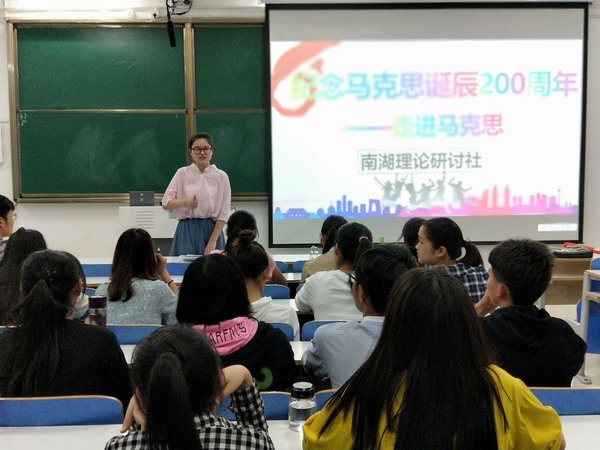 为纪念马克思所创造的伟大功绩,使社团成员深入了解马克思主义理论,推动社团更好发展,5月4日晚,金年会官网南湖理论研讨社在社科楼514教室顺利开展纪念马克思诞辰200周年暨《共产党宣言》发表170周年主题活动。活动由南湖理论研讨社社长张欣主持。