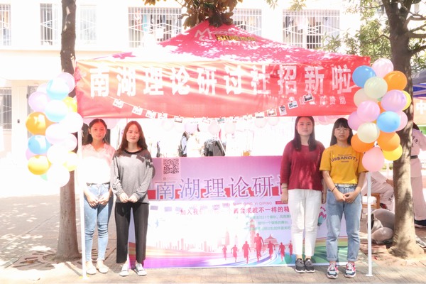 招新前,南湖理论研讨社相关负责人去新生宿舍进行了广泛宣传动员。9月23日至24日,南湖理论研讨社社长带领各部部长在招新现场,分发社团宣传单,为前来咨询社团相关问题的学弟学妹热情讲解。