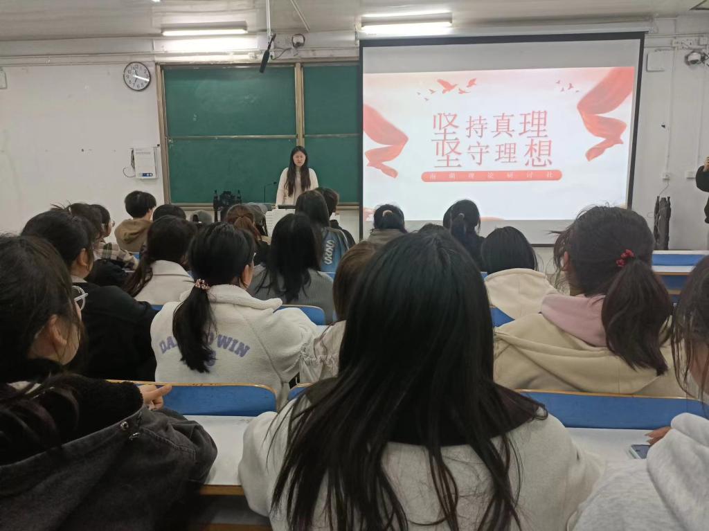 为深刻领悟伟大建党精神,引导学生坚定马克思主义信仰,坚守理想信念,3月15日晚,南湖理论研讨社在社科楼514教室举办“‘坚持真理,坚守理想’——弘扬建党精神,建功伟大时代”主题团课。团课由团支书武文雪主持,全体社员共同参加。