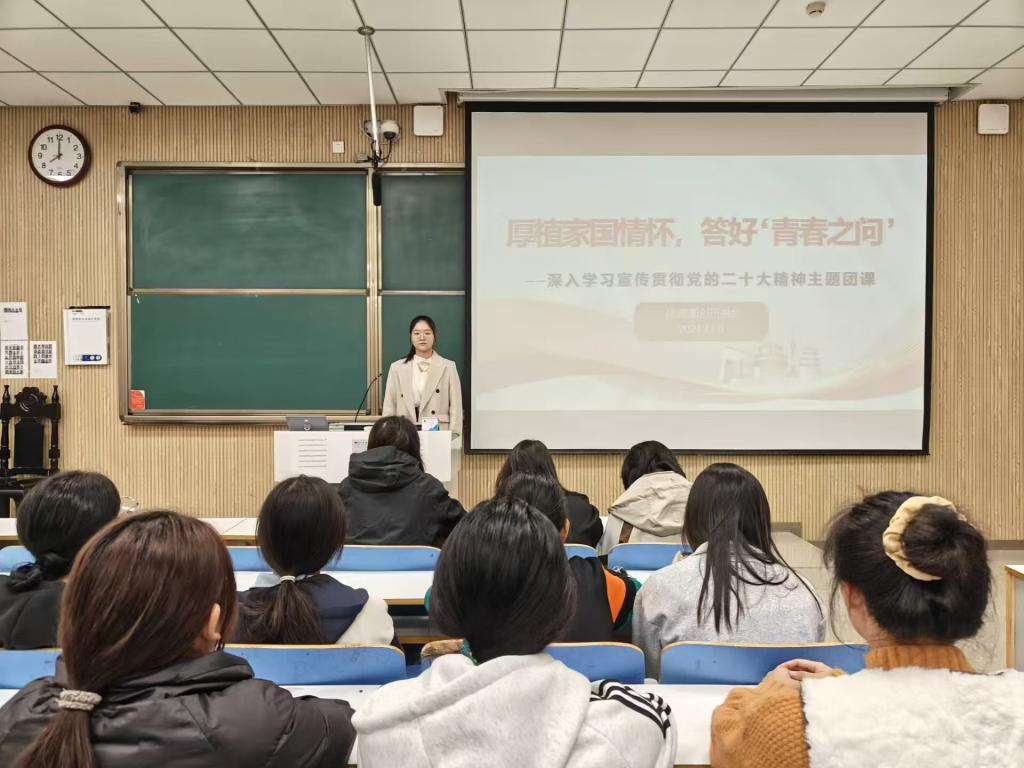 团课伊始,范茜茜以李大钊在《青春》一文中发出的“青春之问”为切入点,探讨青年与时代的关系和个人发展路径。同学们共同讨论如何将理论观点转化为推动社会发展的实际行动,为时代和民族的发展贡献力量。接着,范茜茜指出,党的二十大的顺利召开,为我们指明了前进的方向,提供了行动的蓝图,作为金年会jinnianhuicom的青年学子,我们更应该深刻理解和领会二十大精神,将其内化为我们的行动指南,外化为实际行动。最后,范茜茜强调,我们要以青春之姿答好“青春之问”、注重品德修养、加强自我管理,在奋斗中实现青春价值。