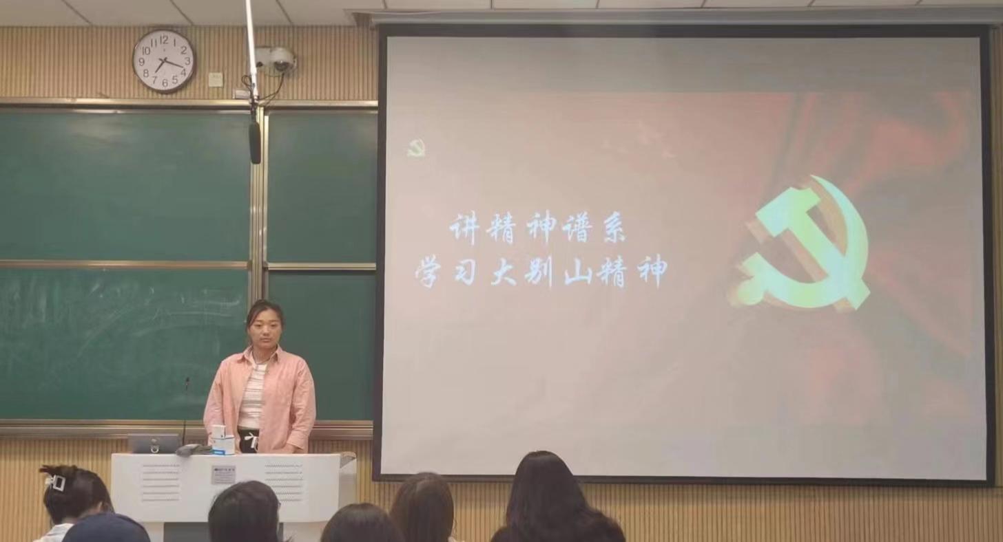 本次活动围绕中国共产党人精神谱系简介、学习大别山精神内涵、传承、弘扬和践行大别山精神行动三个方面展开。活动伊始,张芝一带领全体学员共同学习“坚守信念、对党忠诚,依靠群众、团结奋斗,不畏牺牲、无私奉献,胸怀大局、勇当先锋”的大别山精神。她指出,大别山是红色巨山,走出了众多为国家、为人民抛头颅、洒热血的革命英雄;大别山精神是中国革命精神的重要组成部分,是新时代谱写绚丽篇章的强大精神力量。随后,全体青马学员表示,青年强则国家强,在大别山精神的滋养下,新时代青年要坚定理想信念、厚植家国情怀、矢志不渝奋斗。最后,张芝一对本次活动作出总结,大别山精神是我们党的宝贵精神财富,全体青马学员要弘扬大别山精神,内化于心、外化于行,从扎实学习理论知识入手、以积极参加社会实践发力、从不断提升自身本领出发,做新时代新征程上的奋进者、开拓者、实干者,成为一名合格的社会主义事业建设者和接班人。