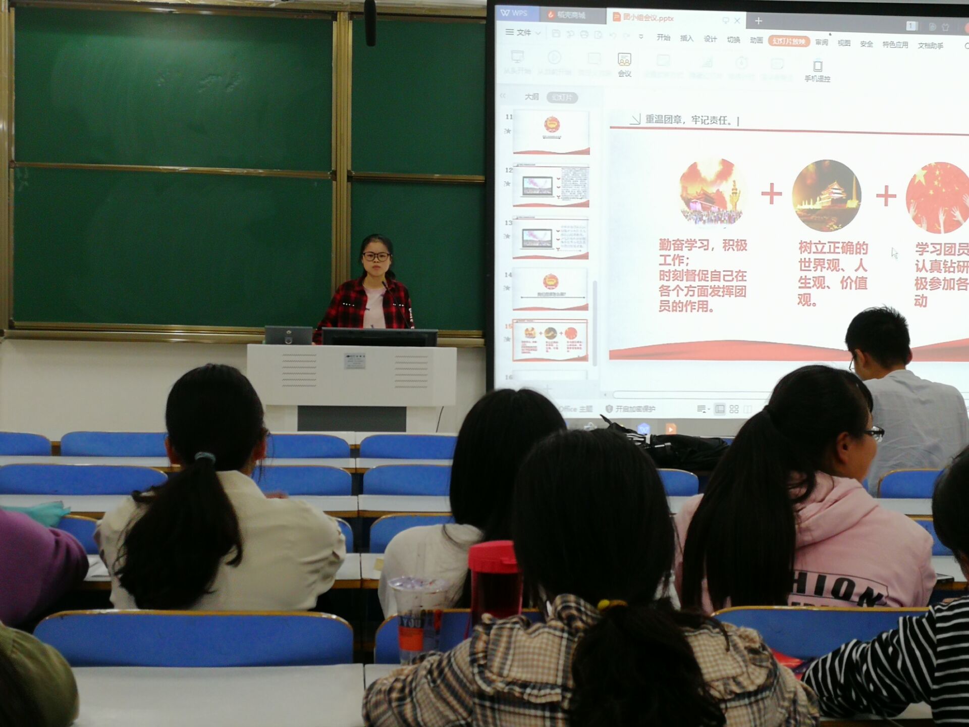 为增强团组织的凝聚力,团结支部成员,促进交流,加强联系,提升其整体素质,4月29日,金年会jinnianhuicom优秀“青年马克思主义者”学员孙亚茜在社科楼514教室主持了团小组会议,并做了以 “重温团章,牢记责任”为主题,以社会主义核心主义“爱国”为切入点进行了宣讲,2017级思想政治教育一班青年团员参加此次活动。
