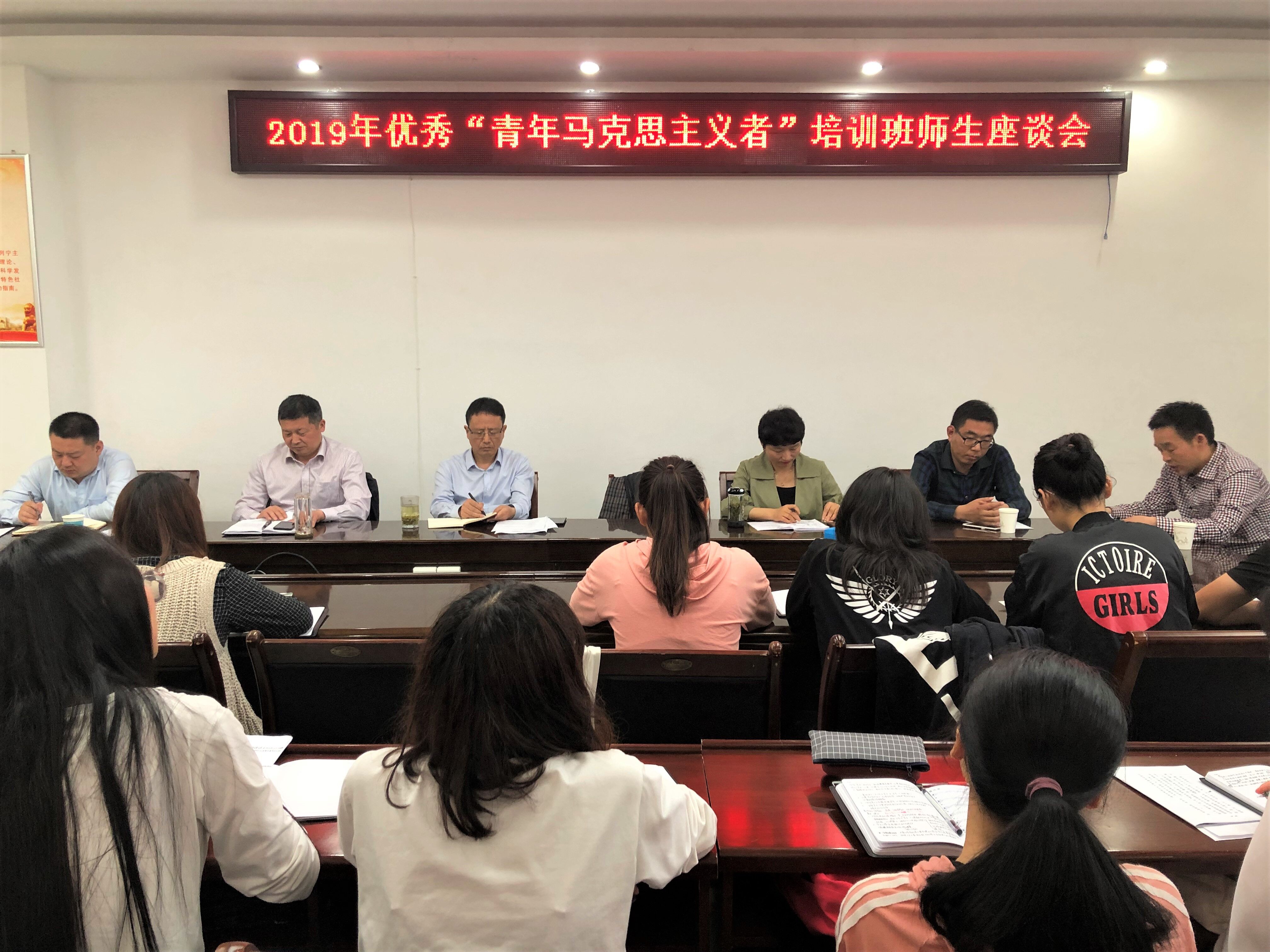 5月14日下午,金年会官网2019年优秀“青年马克思主义者”培养工程在社科楼323会议室召开了师生座谈会。金年会官网党委书记唐国战,党委副书记徐永新、何晓坚,老师代表李蕊、王帆宇、王建礼和全体辅导员、青马工程全体学员共同参加座谈会。会议由党委副书记何晓坚主持。