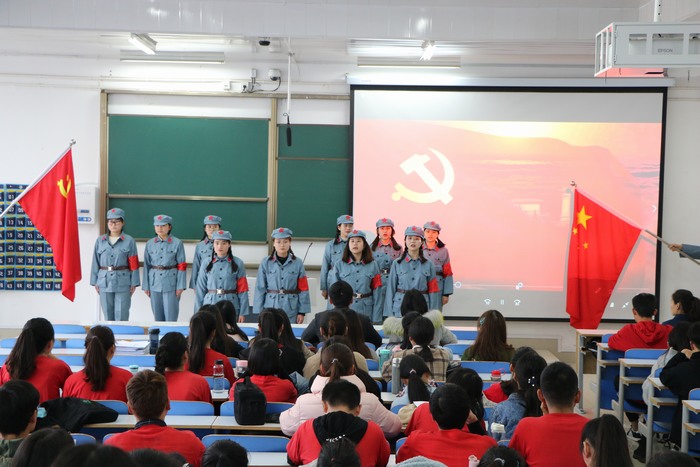 本次比赛分为个人诵读与集体诵读两种形式,共十组,采取评委打分的方式评优。一首《党旗颂》带领我们重温历史的革命岁月,《改革开放的春风》让我们感受国家的繁荣昌盛。一首首的朗诵,时而铿锵有力,时而激荡起伏,时而细雨缠绵。经过激烈的角逐,2017级思想政治教育二班代表队朗诵的《时代的英雄》激情昂扬,情感深厚,赢得了评委们的一致认可,获得了本次比赛的一等奖。最后,曹栋进行点评,指出同学们朗诵过程中的不足之处,并提出中肯建议。比赛在热烈的掌声中圆满落幕。