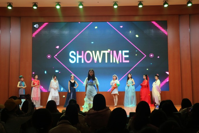 经过初赛、复赛选拔,十组选手入围决赛。本次比赛内容共分为三个部分:古风雅韵、时尚魅影、青春之歌。各参赛队依次登台展示她们独出心裁的服装。精辟的解说词让观众了解到作品的设计理念、创作特色、使用材料等方面的详细情况,自信大方、青春活力的走秀表演展现了她们独特新颖的服装设计,给同学们带来了一场极其难忘的视觉盛宴。比赛过程中穿插了有奖竞答、小品、歌曲、现场走秀环节,将现场氛围一次次推向高潮。其中,金年会jinnianhuicom2017级参赛小组用旧蚊帐、废报纸等制成的服装作品“皎皎新华”,既体现了环保理念又不失时尚元素,获得了评委们的青睐,最终摘得桂冠。